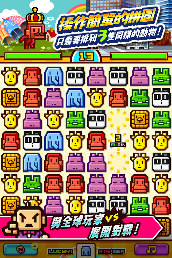 簡單來說就是畫面呈現由大約6種不同動物格所組成8x8的棋盤排列